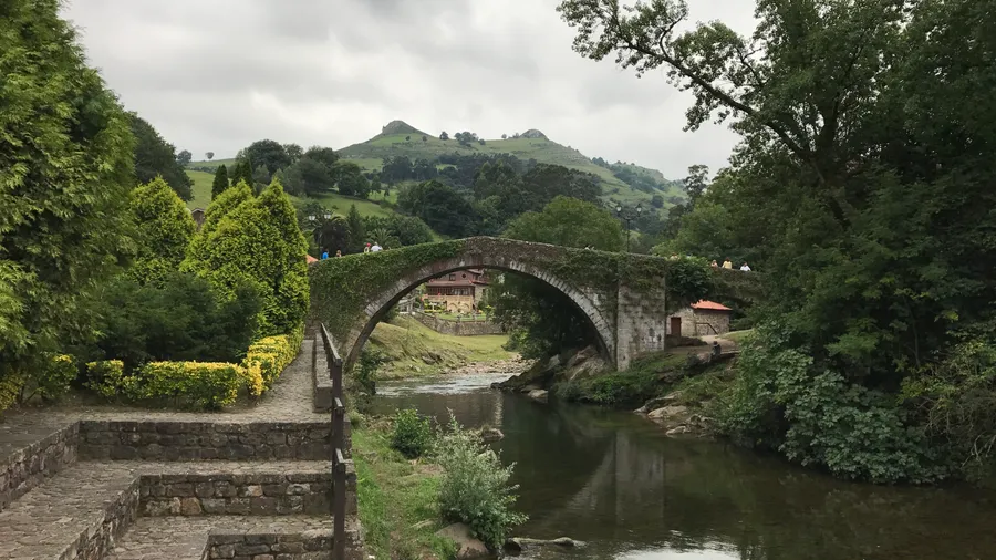 - • Puente medieval de piedra sobre el río Miera
